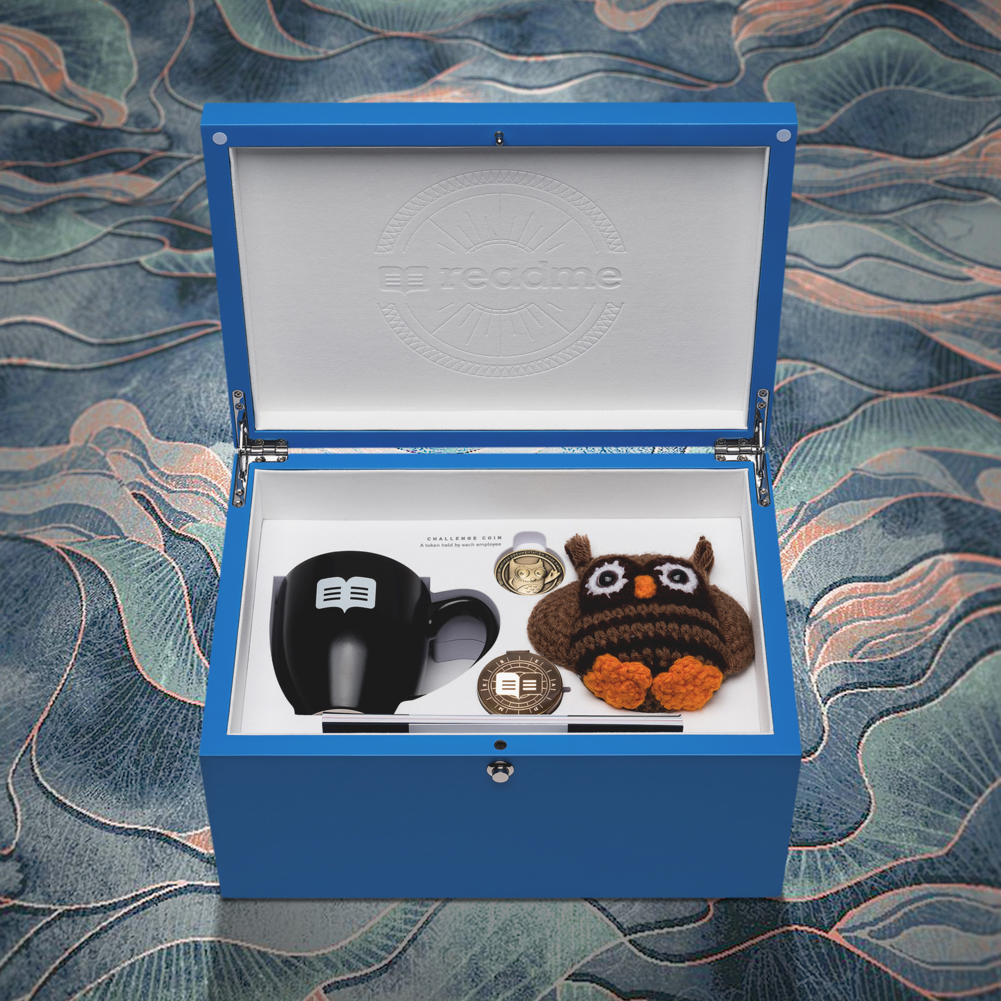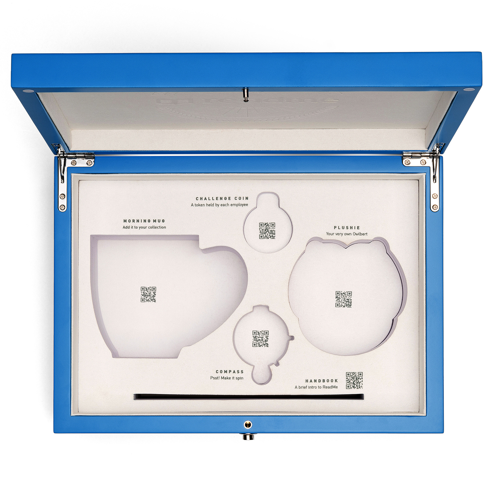 ReadMe wanted first-day kits that felt premium, organized, and on-brand. We created a presentation box with custom-fit inserts so each item had a clear home—and the unboxing felt intentional from the start.